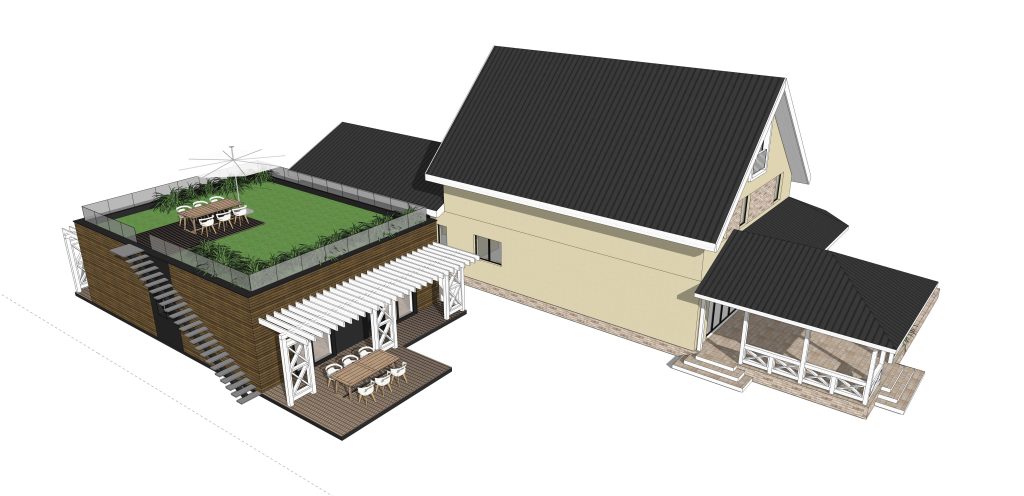 CASA DE LEMN CU ACOPERIS TIP TERASA-SOLUTIA EXTINDERII UNEI CASE EXISTENTE
