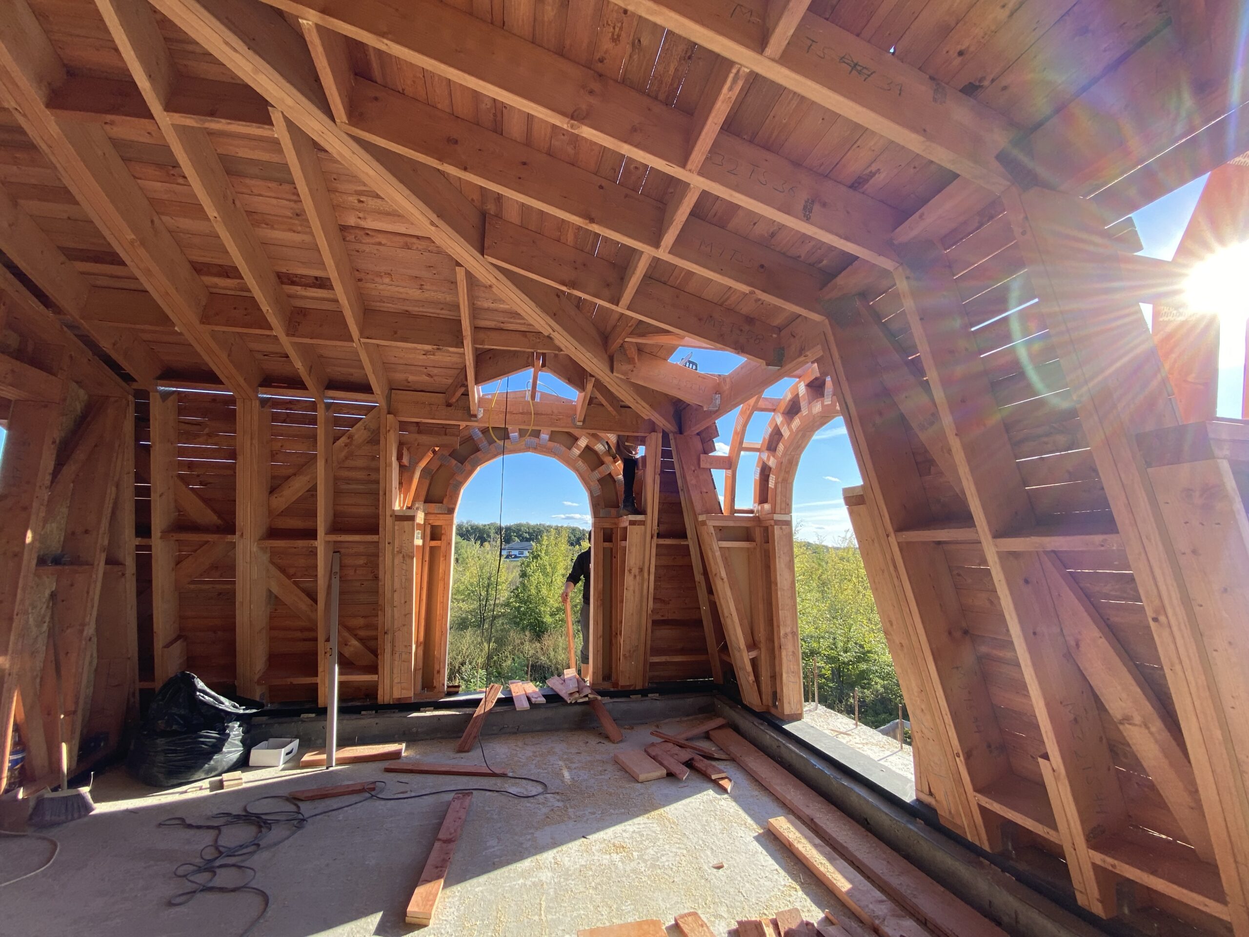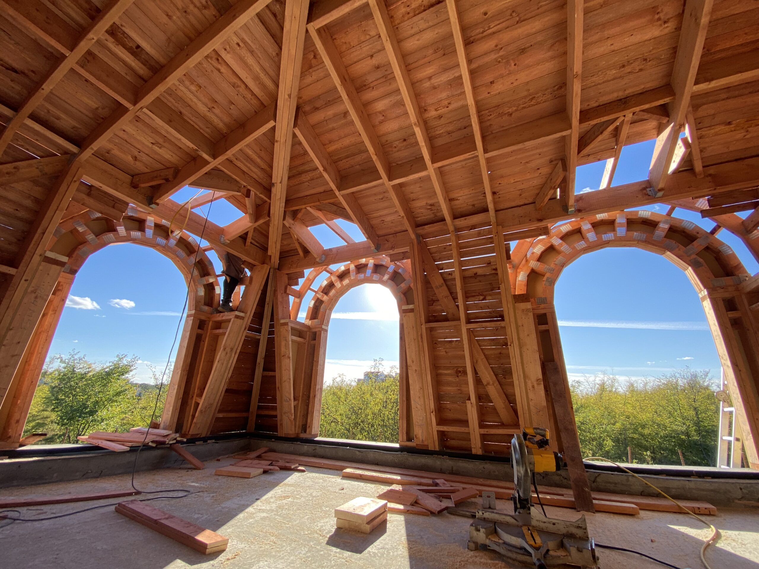 Designul lucarnelor reprezintă elementul central al proiectului. Fiecare dintre cele șapte lucarne semirotunde a fost realizată astfel încât să permită luminii naturale să inunde spațiul, creând o atmosferă caldă și primitoare. Dorința beneficiarului a fost ca mansarda, cu detalii arhitecturale rafinate și design unic, să aducă un echilibru perfect între estetică și funcționalitate, permițându-i în același timp să se bucure de priveliști încântătoare la apus.