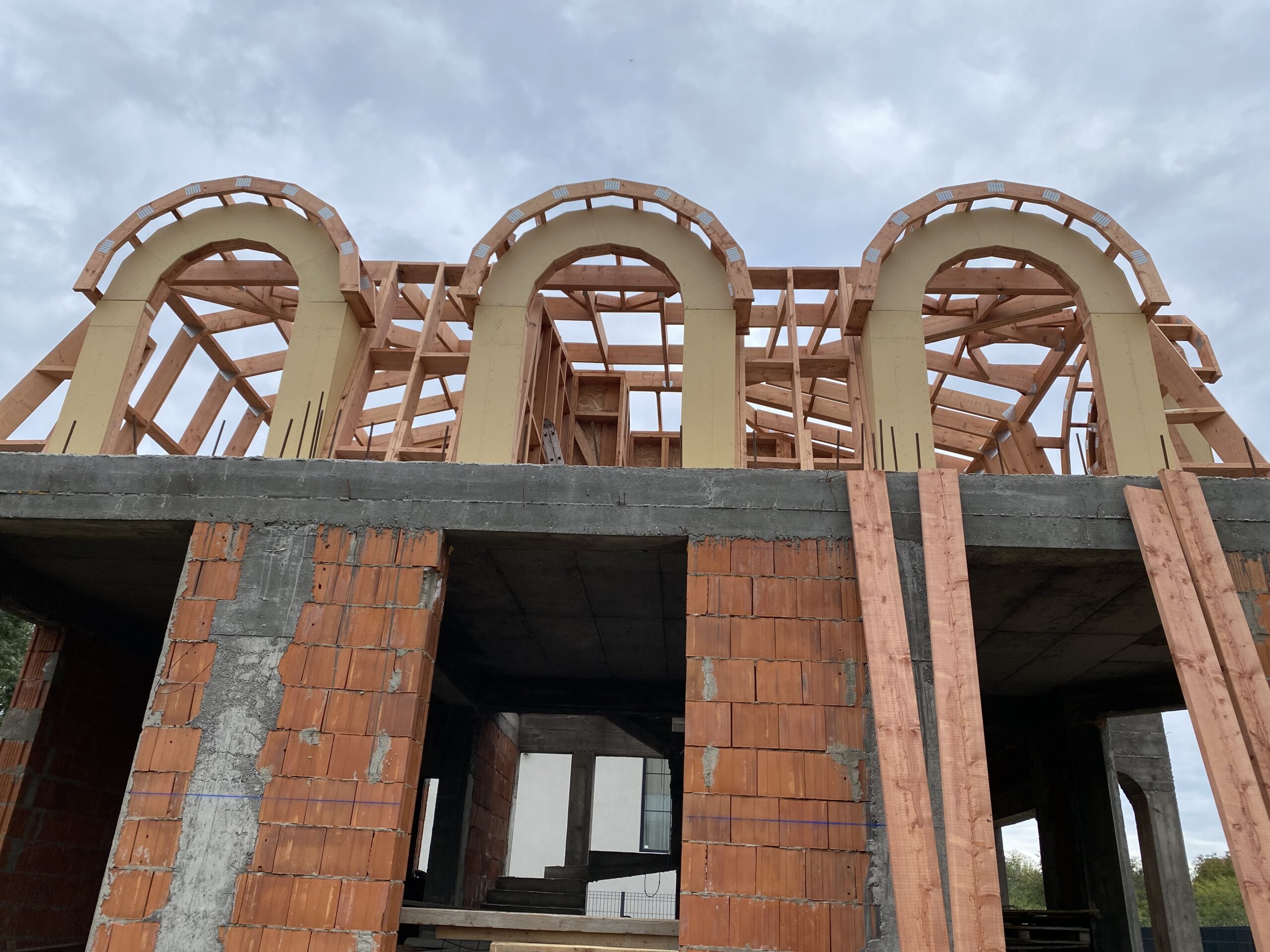 Într-un proiect ambițios realizat în inima Bucureștiului, am avut plăcerea să dăm viață unei mansarde franceze pe structură din lemn, integrată pe o casă din beton. Această construcție se evidențiază prin arhitectura sa sofisticată și elementele de design rafinate, deosebindu-se prin cele șapte lucarne semirotunde – adevărate elemente de unicitate, ce sporesc eleganța fațadei și adaugă o notă de autenticitate și farmec întregii locuințe.
