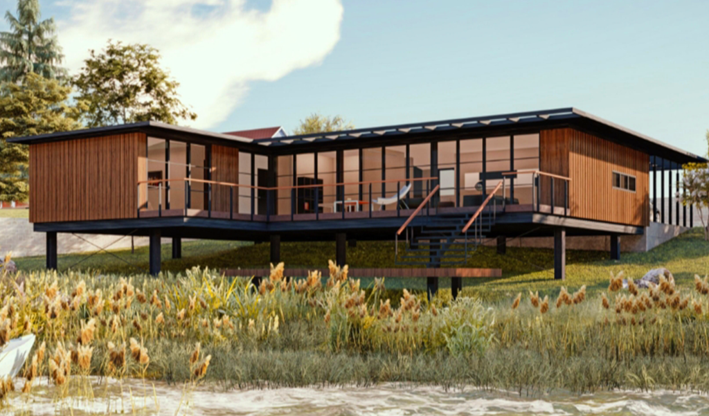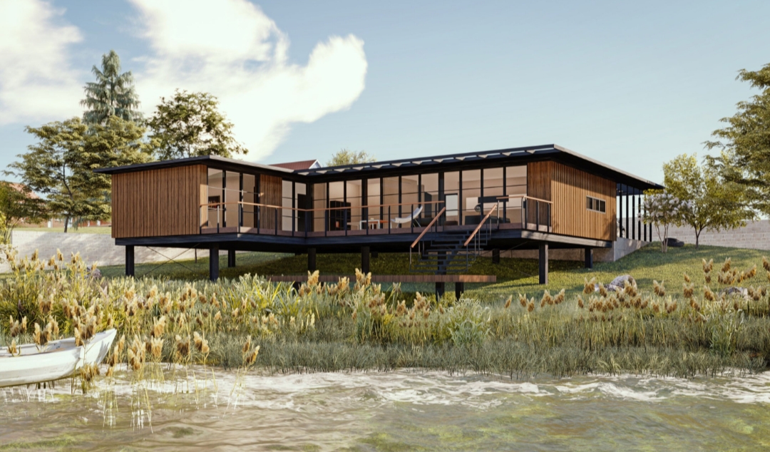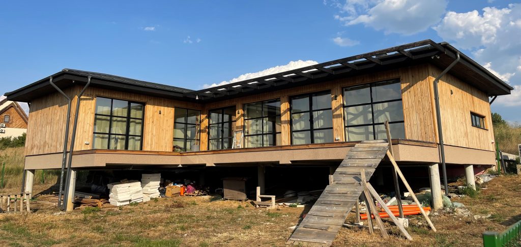 Vă prezentăm o casă construită într-un mediu natural și relaxant, departe de aglomerația orașului, realizată cu ajutorul tehnologiei prefabricării caselor pe structură din lemn.