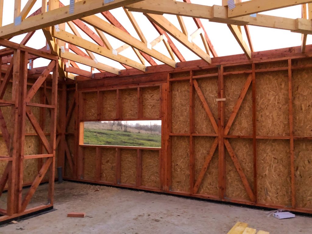 • 🏗️ Acoperiș realizat din ferme prefabricate cu conectori multicui (conform standardului european EN14545:2008);