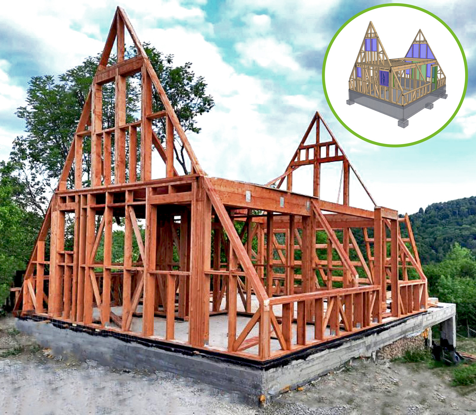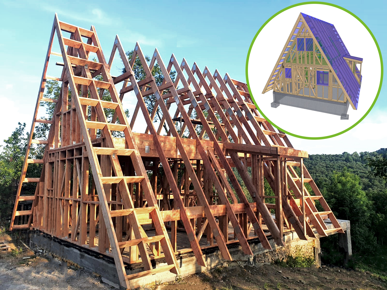 Proiectarea și calculul de rezistență au fost realizate de inginerii proiectanți structuriști ai companiei noastre, în soft-ul PAMIR – program specializat pentru structuri din lemn