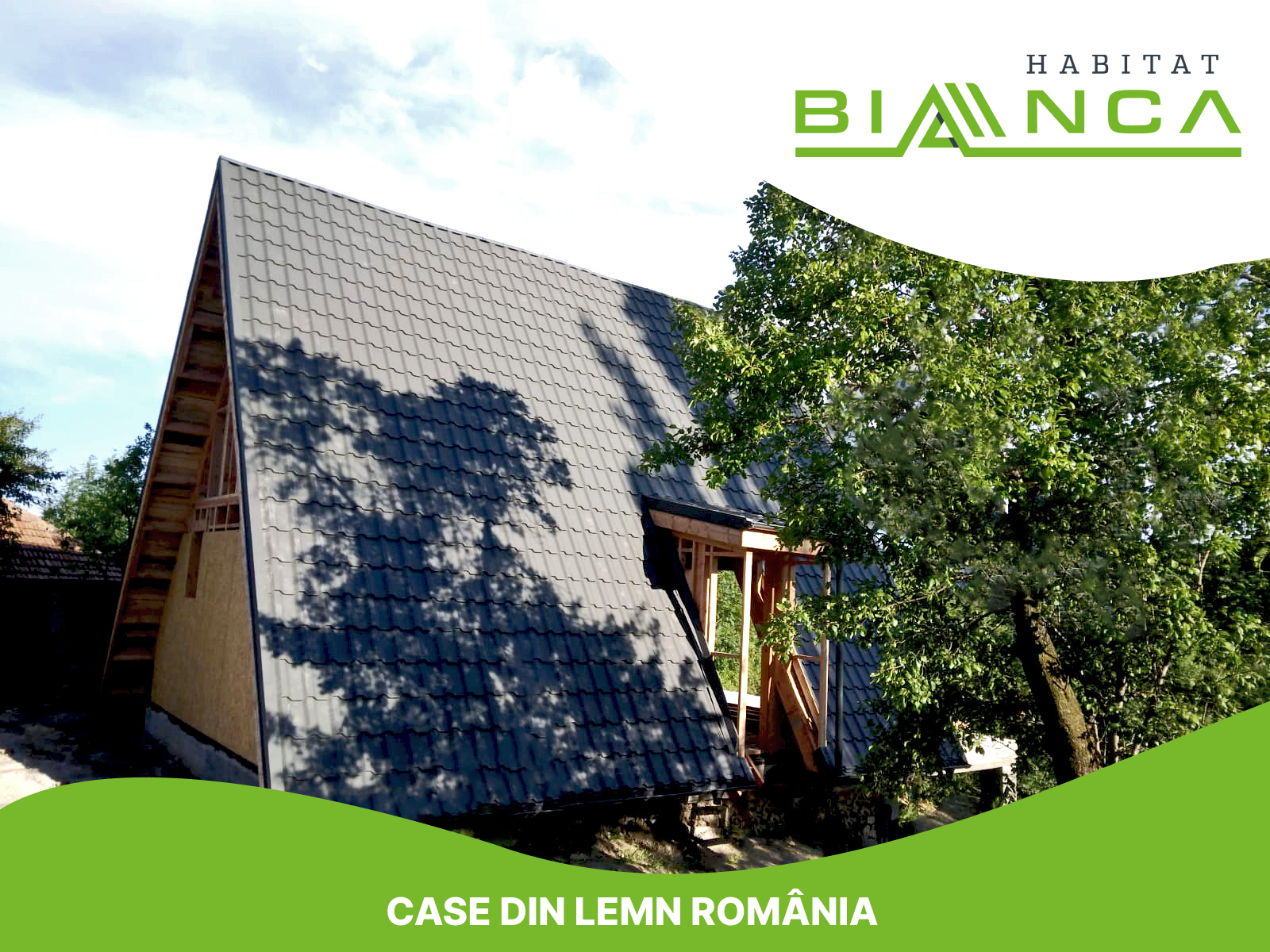 Echipa Habitat-Bianca a finalizat de curând montajul unei case prefabricate pe structură din lemn, tip A-frame, în Comarnic, Jud. Prahova. Cu un regim de înălțime parter + mansardă și cu o suprafață desfășurată de 80 mp, montajul casei de lemn a fost realizat în doar 3 zile, deși terenul accidentat nu a permis folosirea utilajelor profesionale de ridicare.
