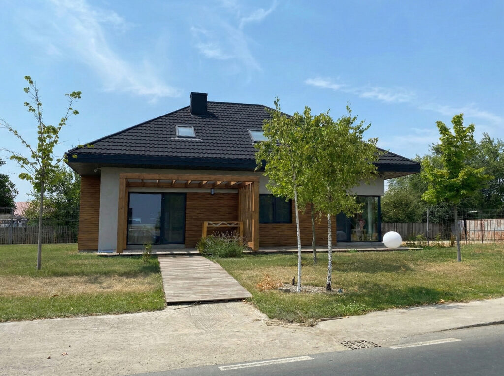 În același timp, am dezvoltat un birou propriu de proiectare, consultanță și vânzări în București, într-o casă pe structură din lemn, pe care am construit-o ca model de prezentare.