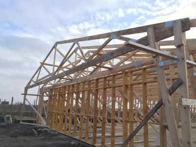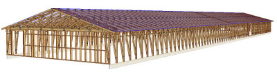 La începutul lunii decembrie, Habitat Eco Structuri a realizat în Jud. Prahova o hală din lemn de tip portal de 960 mp, cu o deschidere de 15.45 m și o înălțime la coamă de 5.3 m, având ca utilitate: fabrică de confecții textile.