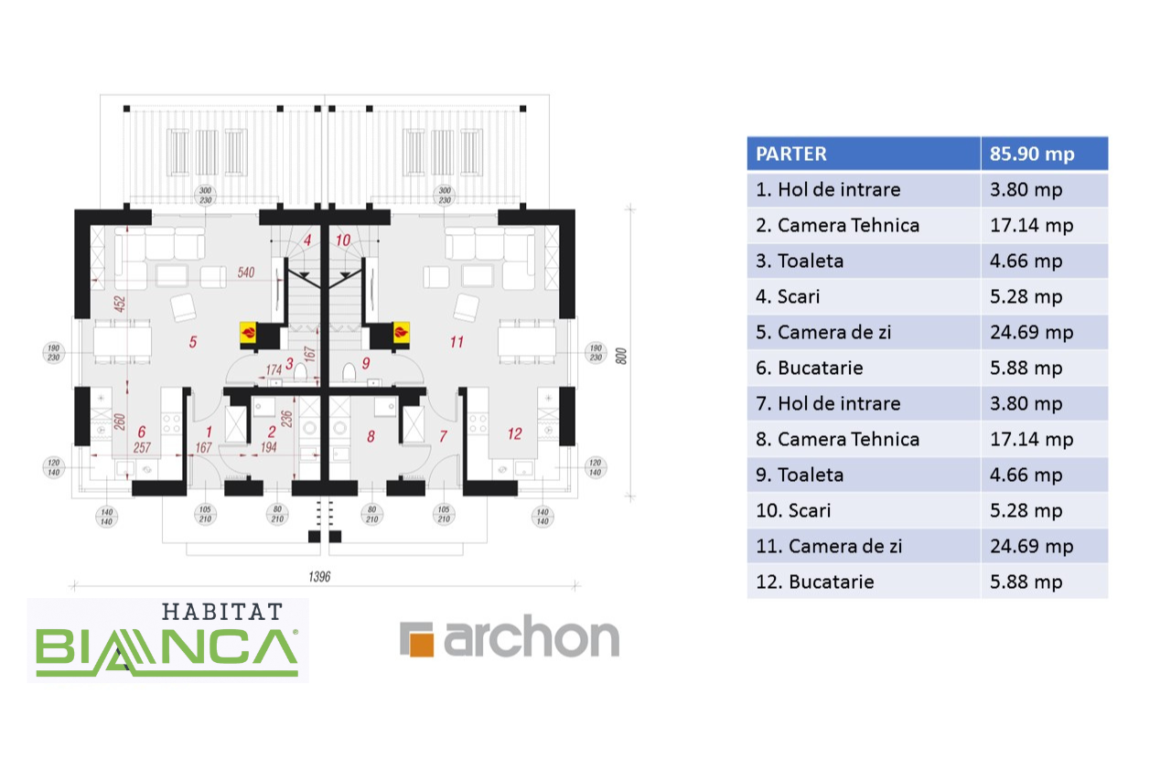 În total, cele două unități locative au 143 de metri pătrați, ceea ce conturează locuințe decente din punct de vedere al spațiului și foarte economice.
