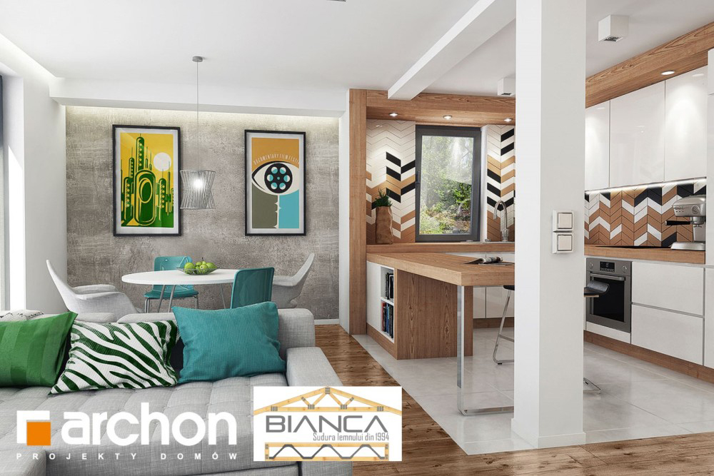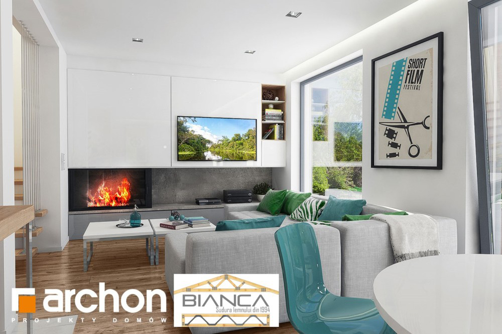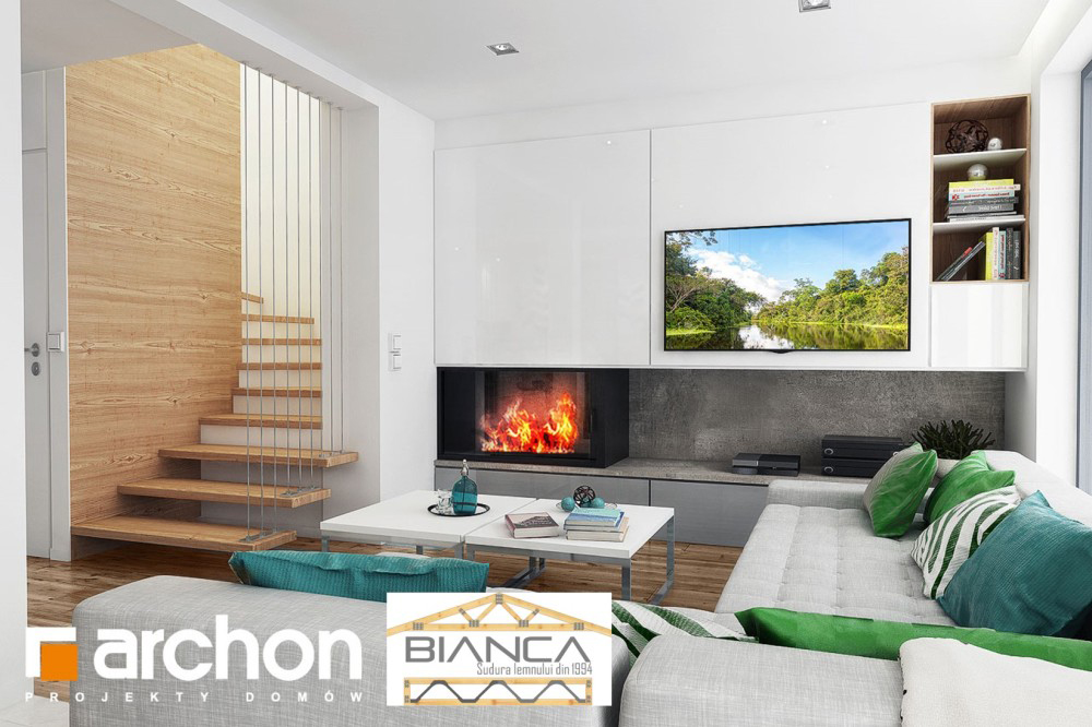 După ce intri în casă descoperi un living spațios, cu deschidere mare către bucătărie, care asigură acea senzație de libertate pe care o caută toată lumea. În living există și un șemineu ce potențează răceala unui spațiu mare și oferă o doză mare de căldură și culoare.
