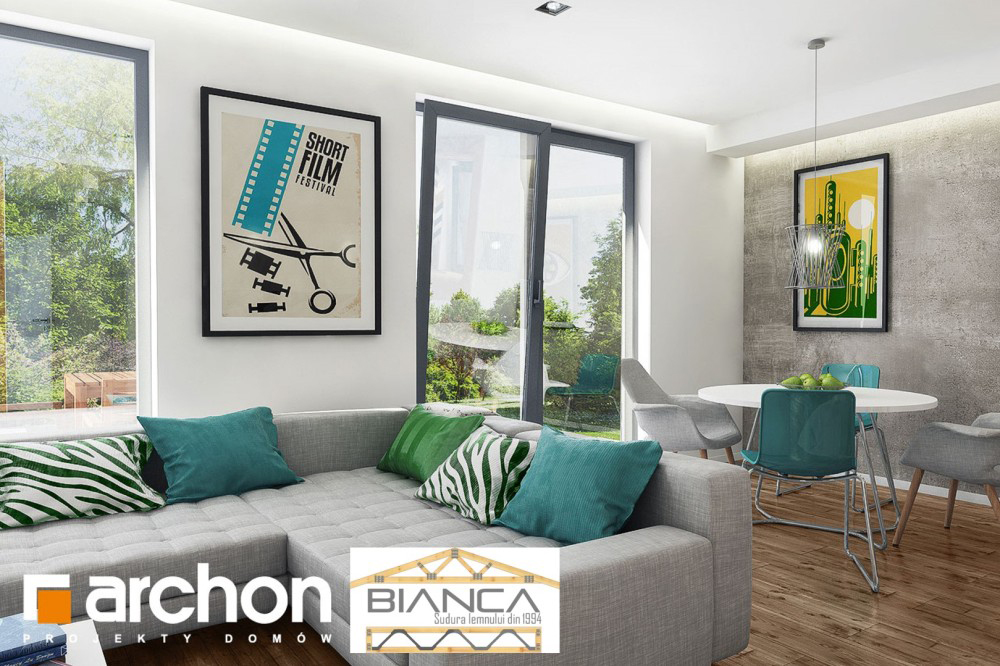 Încă de la exterior pot fi descoperite suprafețele vitrate mari, care generează spații luminoase și confortabile în interior.