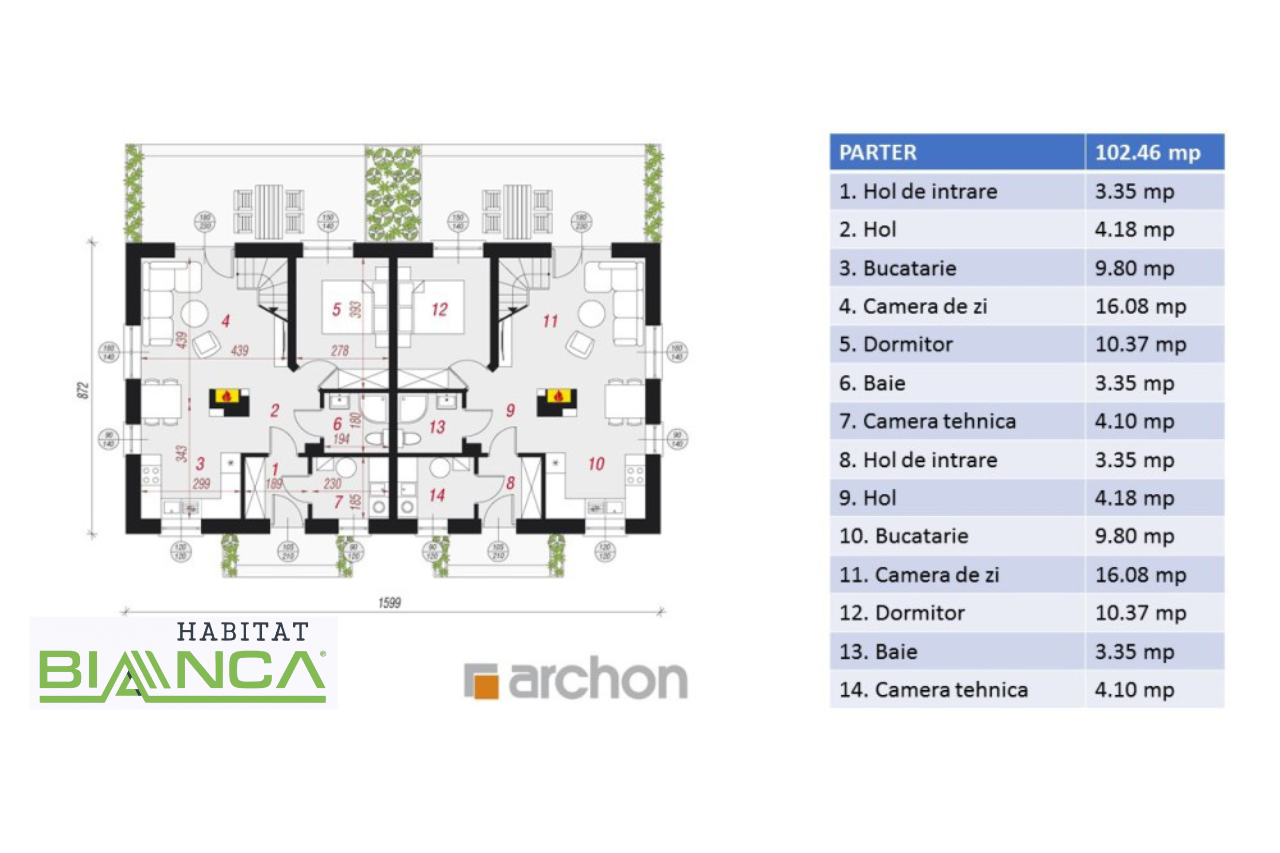 Dacă îți dorești o casă economică, dar totuși modernă, spațioasă, intimă și dotată cu tot ceea ce ai nevoie pentru o viață liniștită, acest duplex este perfect. Este adevărat că va trebui să împarți construcția cu încă o familie, însă nu este nicio problemă atâta vreme cât casa este gândită să ofere intimitate.