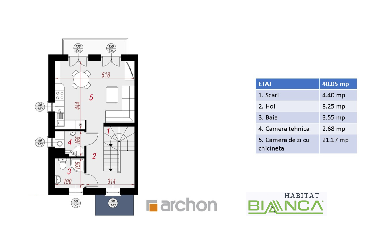 Pentru cei care își doresc o locuință încăpătoare, dar nu dispun de un teren generos pentru construcție, această vilă înșiruită cu o suprafață desfășurată de 113 mp și o amprentă la sol de doar 39,72 mp reprezintă o alegere excelentă.