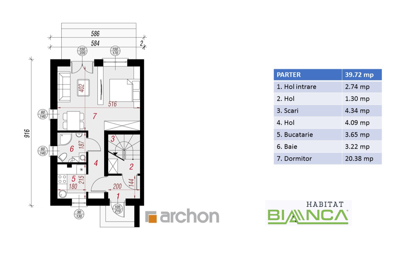 - Compartimentare eficientă, ideală pentru o familie numeroasă: 3 dormitoare, living spațios cu chicinetă, 3 băi și un dressing;