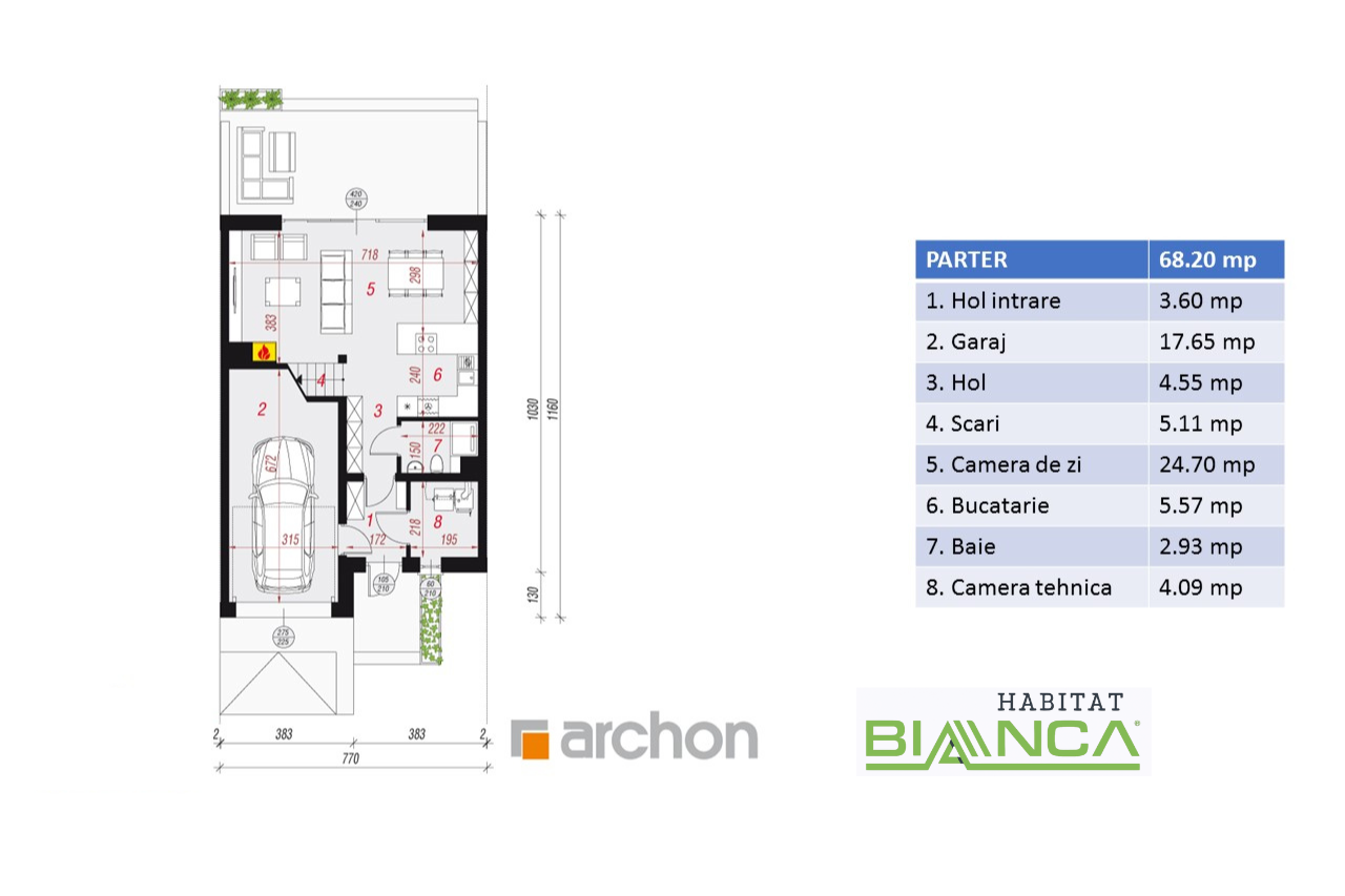 - Living open-space generos, completat de o baie și o cameră tehnică la parter;