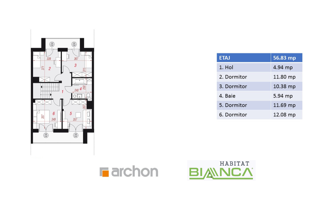 - Etaj destinat zonei de noapte, cu 4 dormitoare și o baie;