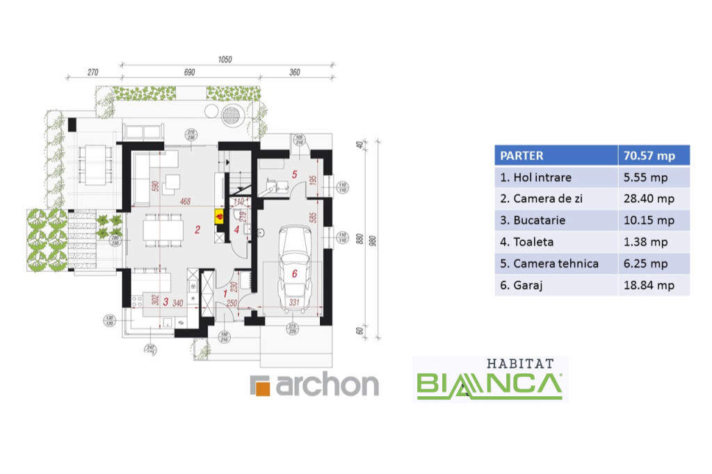 - Spațiu generos. La parter ai o cameră de zi de 28 de metri pătrați care pare mult mai mare grație bucătăriei open space. Tot la parter te poți bucura de câteva spații de depozitare și de un garaj.