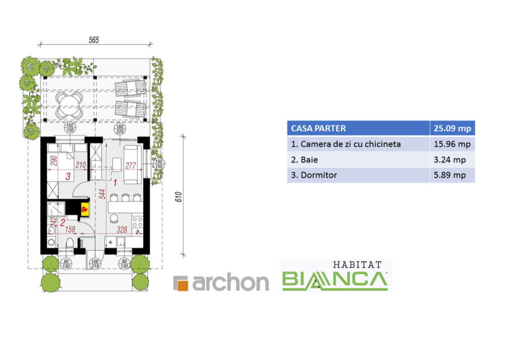• O cameră de zi cu chicinetă, de aproape 16 mp, care oferă un spațiu luminos și multifuncțional pentru relaxare, gătit și luat masa;