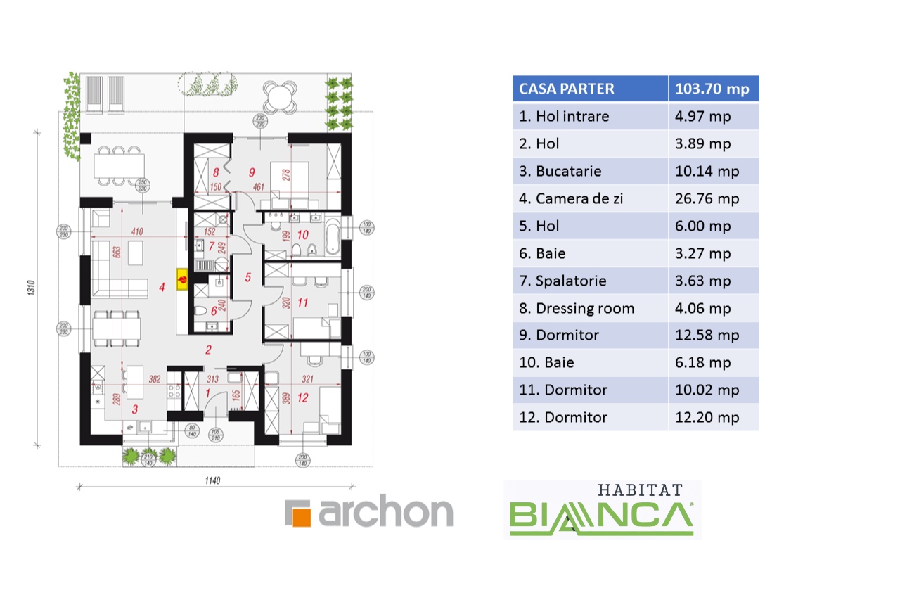 - Dressing amplu, care ajută la păstrarea ordinii și la economisirea de spațiu;
