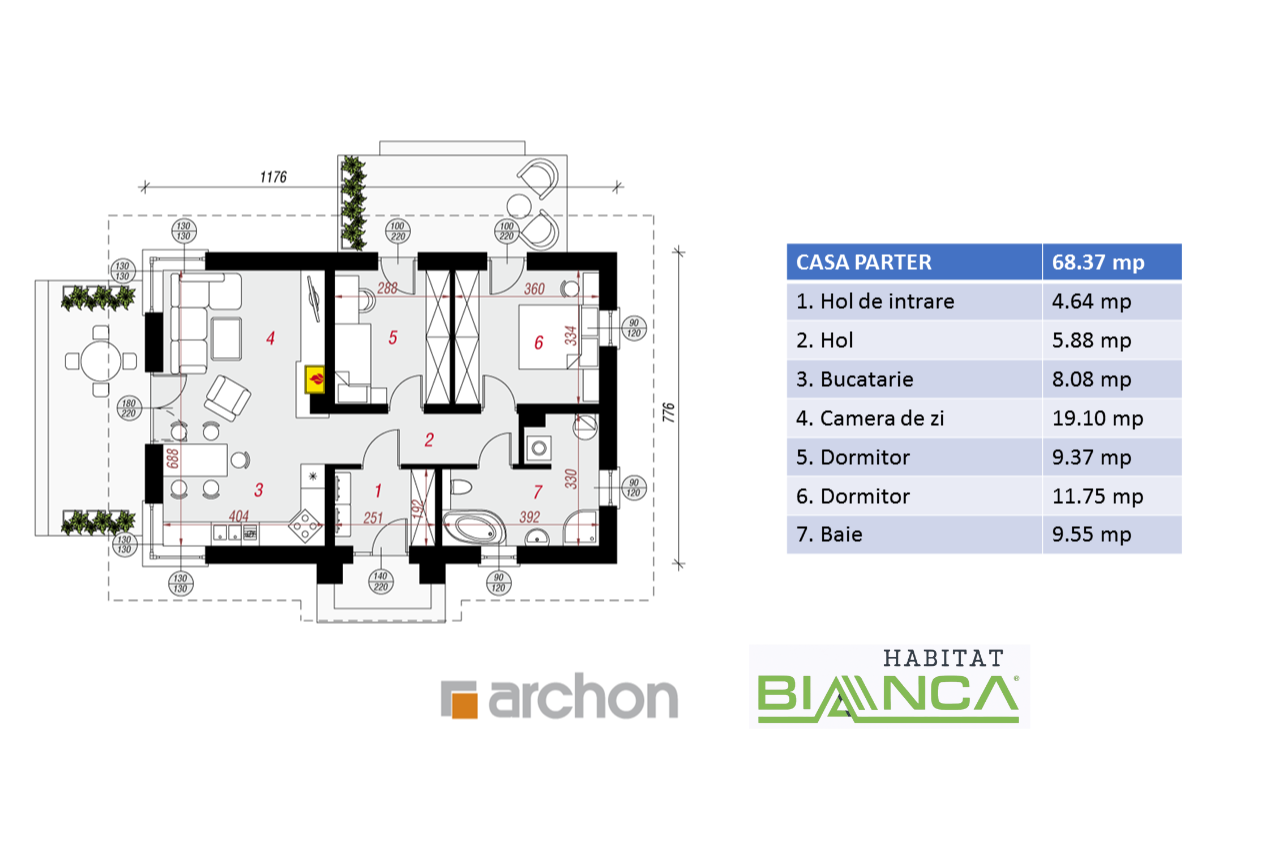 Această locuință reprezintă o alternativă inteligentă la apartamentul clasic, oferind avantajul unei grădini proprii și posibilitatea de a adăuga o terasă luminoasă pentru relaxare în aer liber.