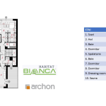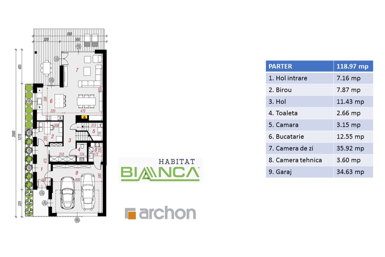 - Garaj integrat, baie, birou, cămară și cameră tehnică la parter;