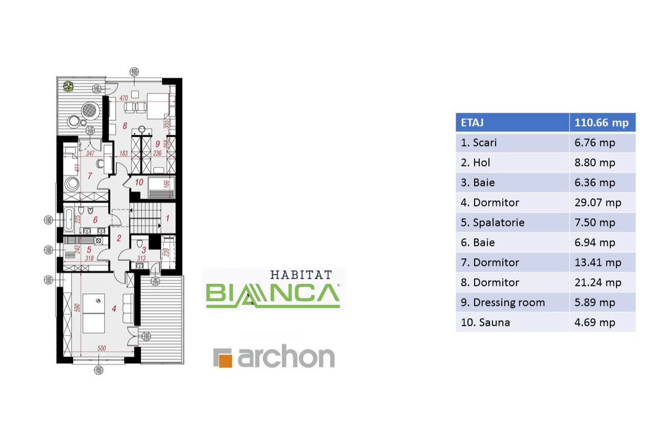 - Etaj cu 3 dormitoare, 2 băi, dressing, spălătorie și chiar o saună – pentru un plus de relaxare.