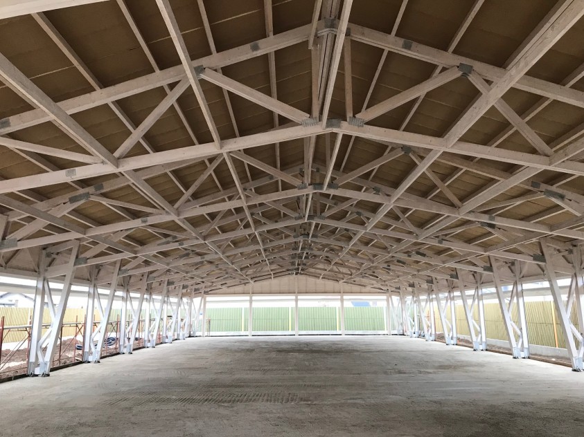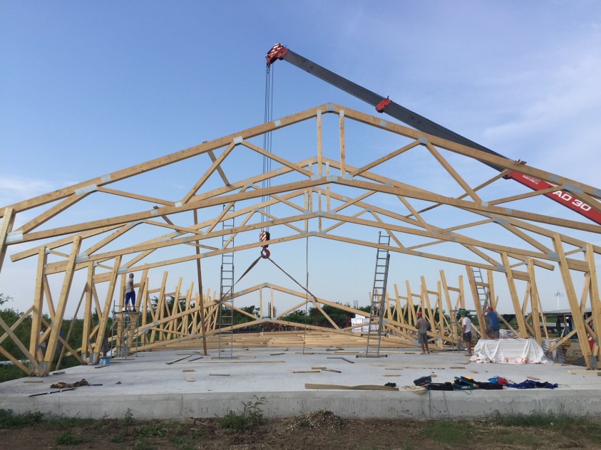Habitat-Case Bianca a executat in anul 2017 un salon de evenimente pe structura din lemn cu ajutorul tehnologiei MITEK-SUDURA LEMNULUI cu placi multicui. Modelul executat este tip hala din lemn cu ferme portal (grinzi cu zabrele din lemn). Acest concept reprezinta cea mai economica solutie pentru realizarea de structuri din lemn rapide si sigure, tehnologia de fabricare permitand realizarea de constructii industriale si agricole fara reazeme intermediare de pana la 40 m.